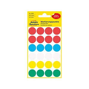 Avery etiket Zweckform 18mm rond blister a 96 etiketjes assorti